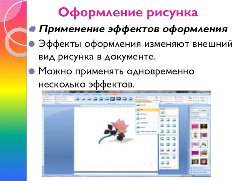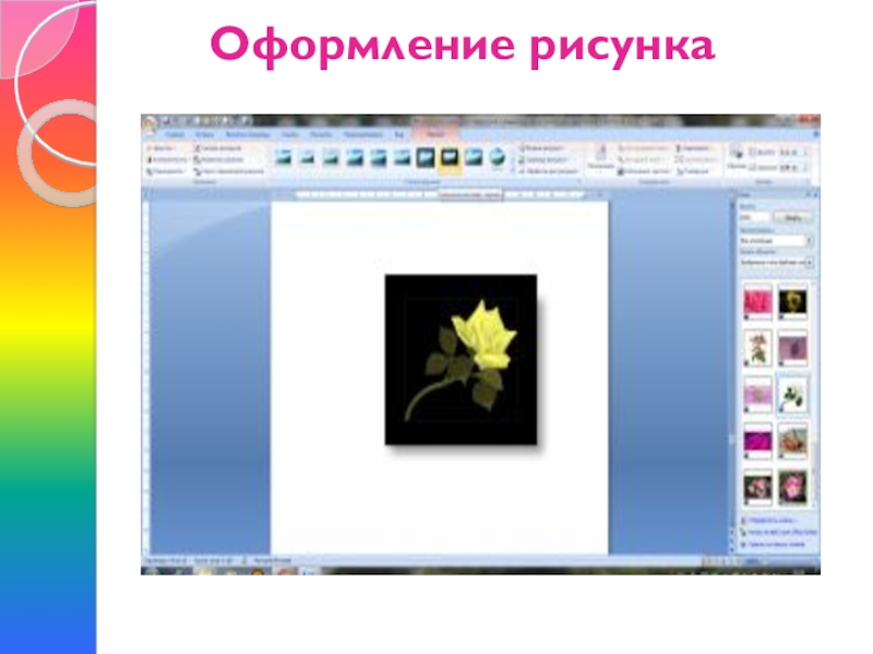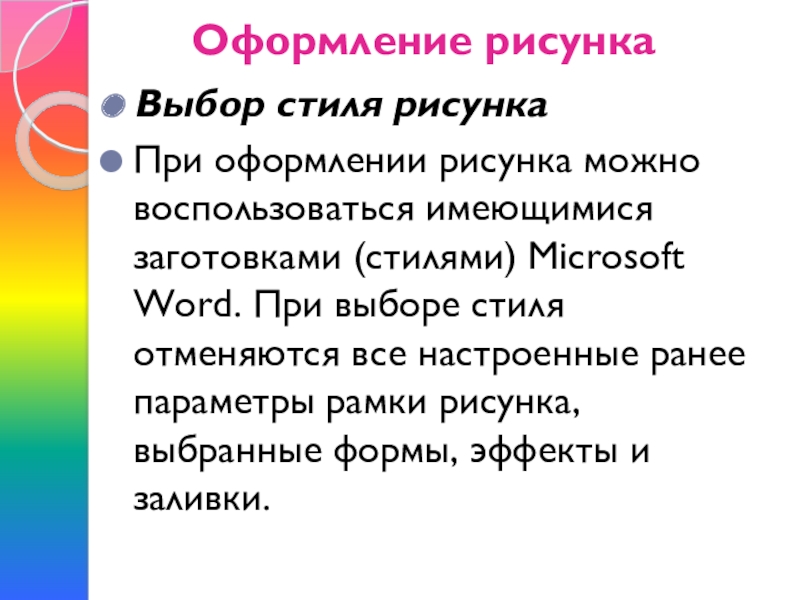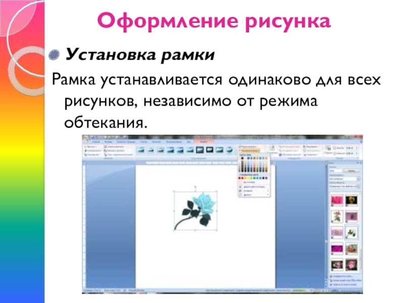 (стилями) Microsoft Word. При выборе стиля отменяются все настроенные ранее параметры рамки рисунка, выбранные формы, эффекты и заливки.