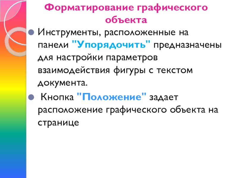 Инструменты, расположенные на панели "Упорядочить" предназначены для настройки параметров взаимодействия