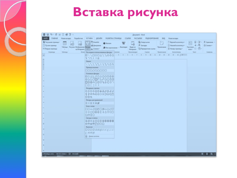 Вставка различных графических изображений осуществляется в какой вкладке?
