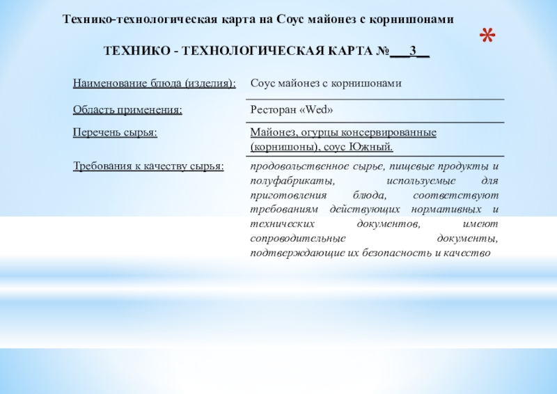 Технико-технологическая карта на Соус майонез с корнишонами