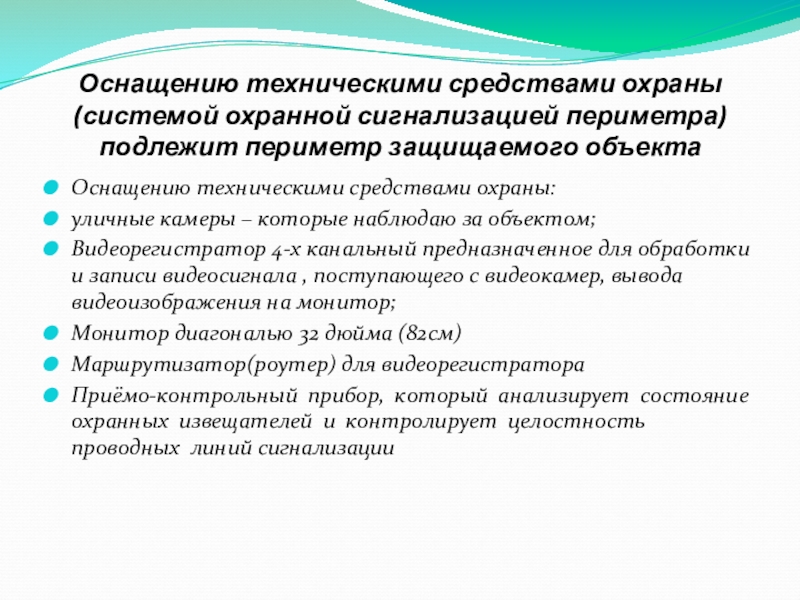 Оснащению техническими средствами охраны: