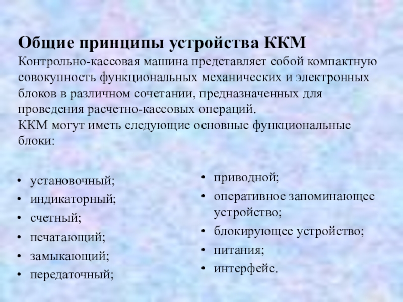 ККМ могут иметь следующие основные функциональные блоки: