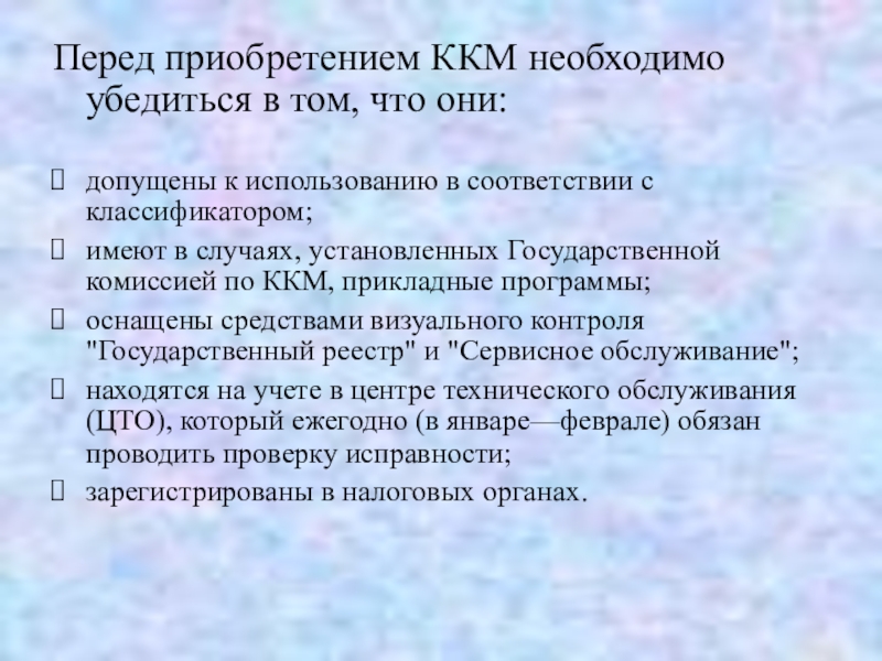 Перед приобретением ККМ необходимо убедиться в том, что они: