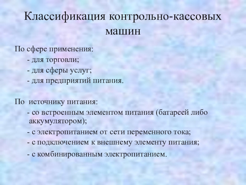 Слайд 2Классификация контрольно-кассовых машин