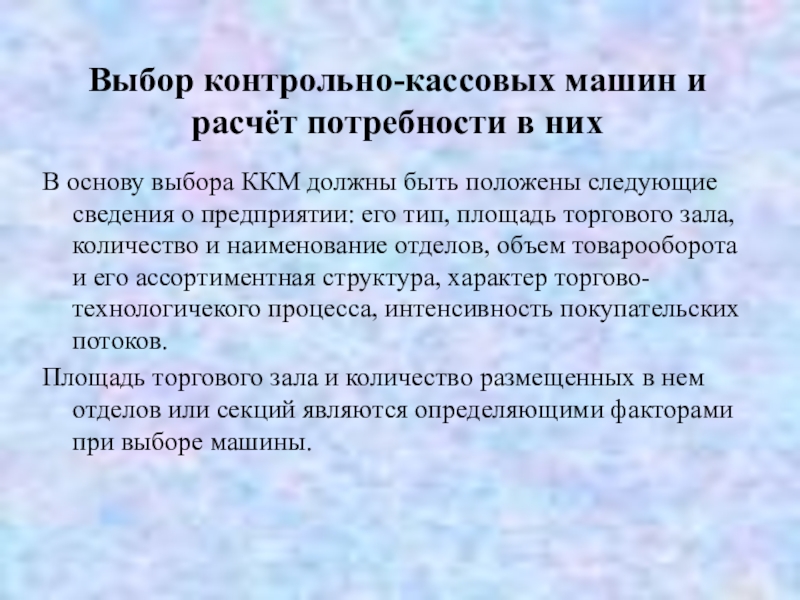 Слайд 17Выбор контрольно-кассовых машин и расчёт потребности в них