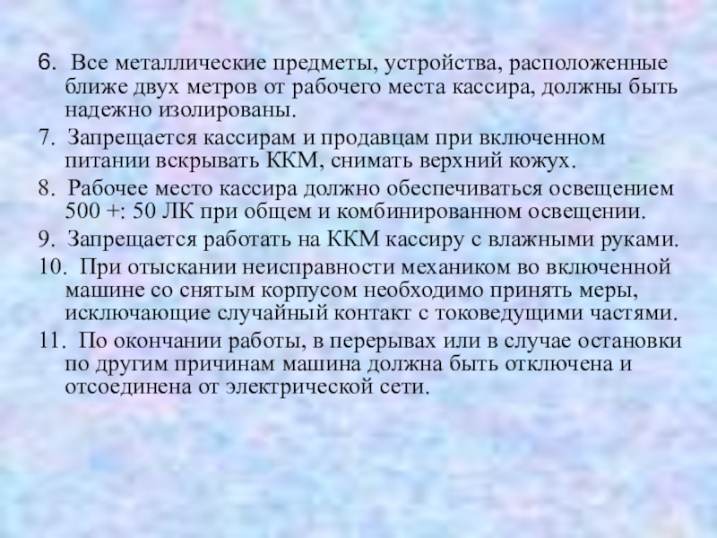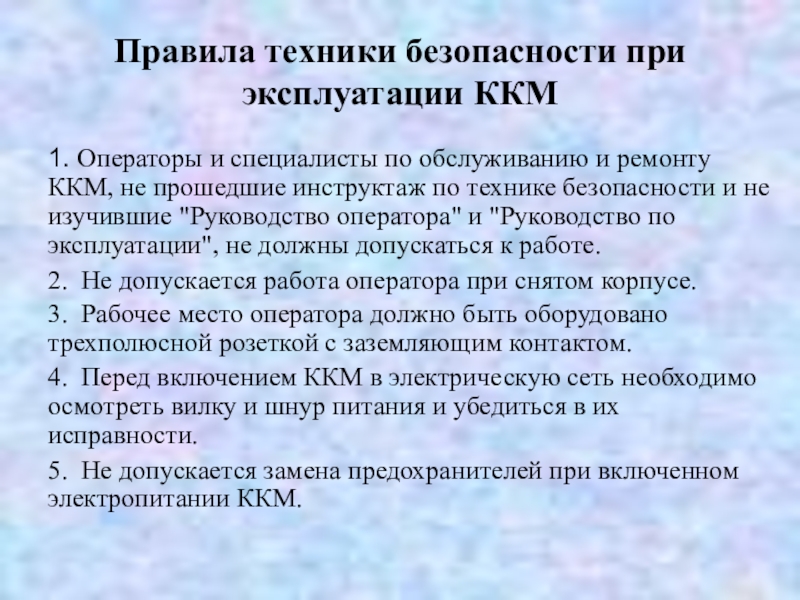 Слайд 20Правила техники безопасности при эксплуатации ККМ