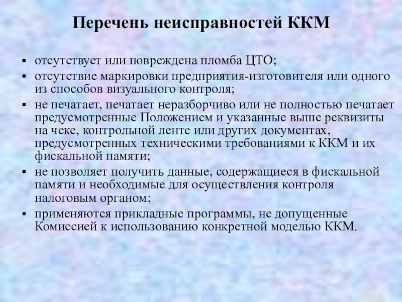Слайд 11Перечень неисправностей ККМ