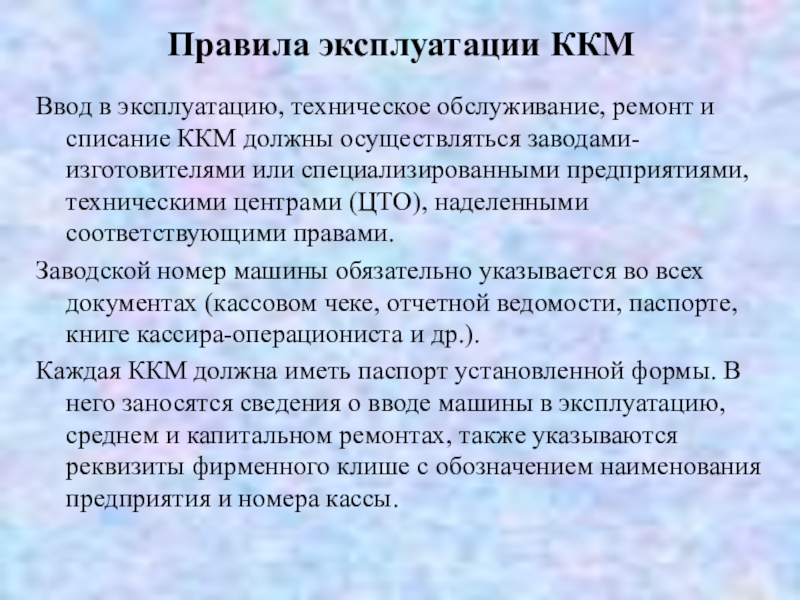 Слайд 15Правила эксплуатации ККМ