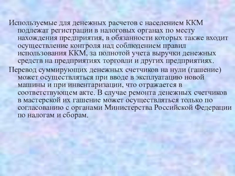 Используемые для денежных расчетов с населением ККМ подлежат регистрации в