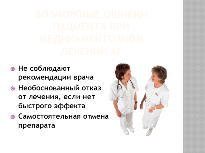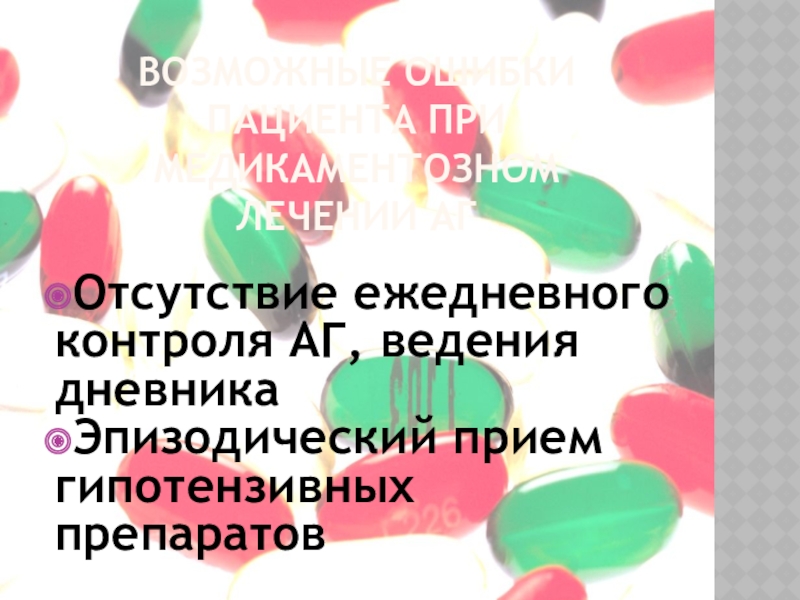 Слайд 31ВОЗМОЖНЫЕ ОШИБКИ ПАЦИЕНТА ПРИ МЕДИКАМЕНТОЗНОМ