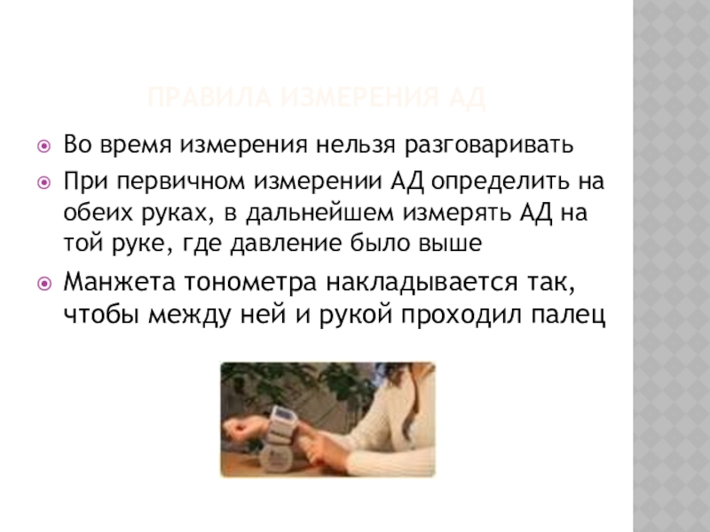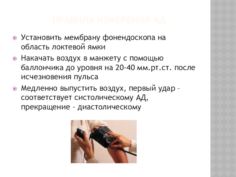 Слайд 13ПРАВИЛА ИЗМЕРЕНИЯ АД