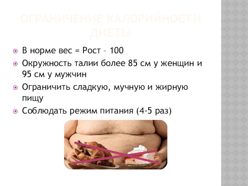 Слайд 19ОГРАНИЧЕНИЕ КАЛОРИЙНОСТИ ДИЕТЫ