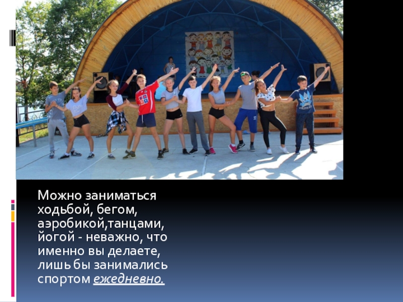 Слайд 11 и попробуйте что - Можно заниматься ходьбой, бегом, аэробикой,танцами,