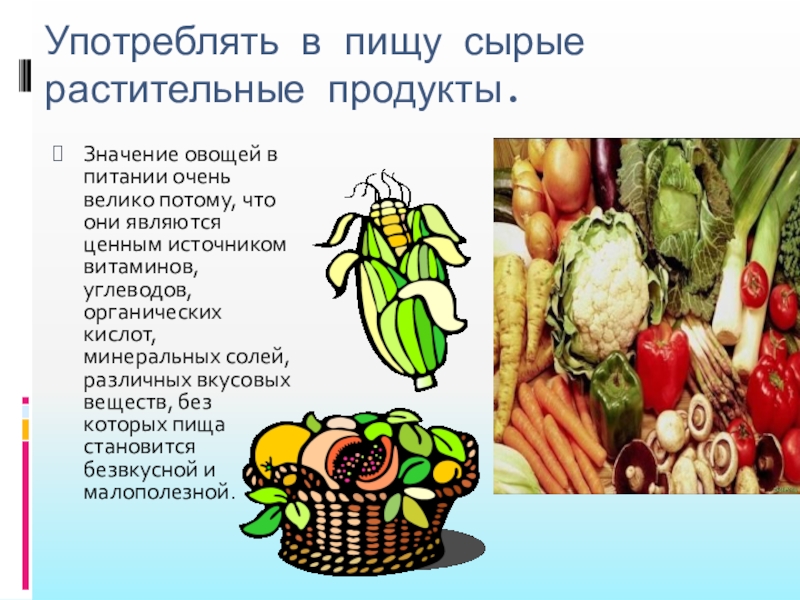 Слайд 6Употреблять в пищу сырые растительные продукты.