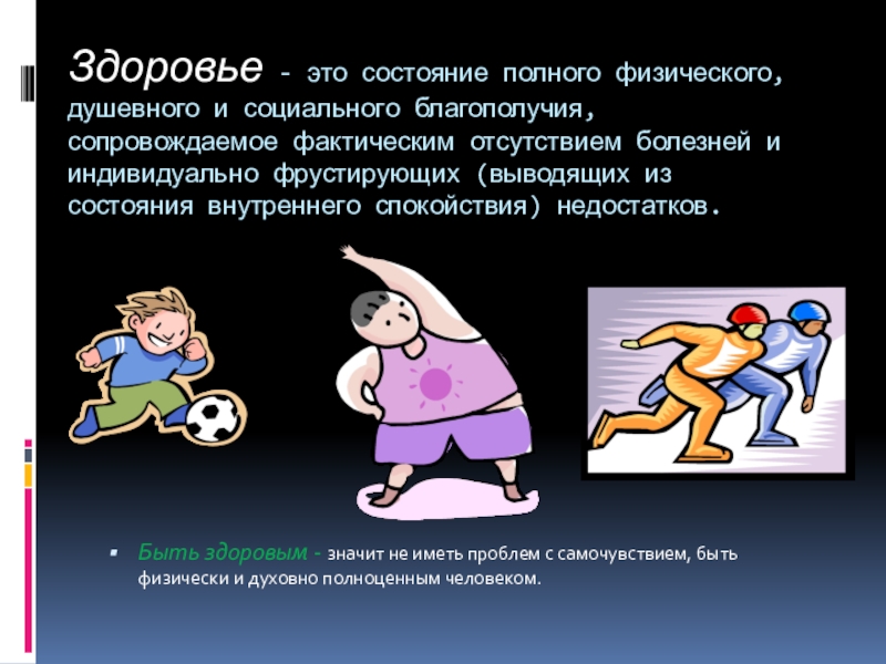 Слайд 2Здоровье - это состояние полного физического, душевного и социального благополучия, сопровождаемое