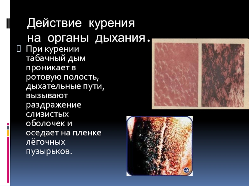 полость, дыхательные пути, вызывают раздражение слизистых оболочек и оседает на пленке лёгочных пузырьков.