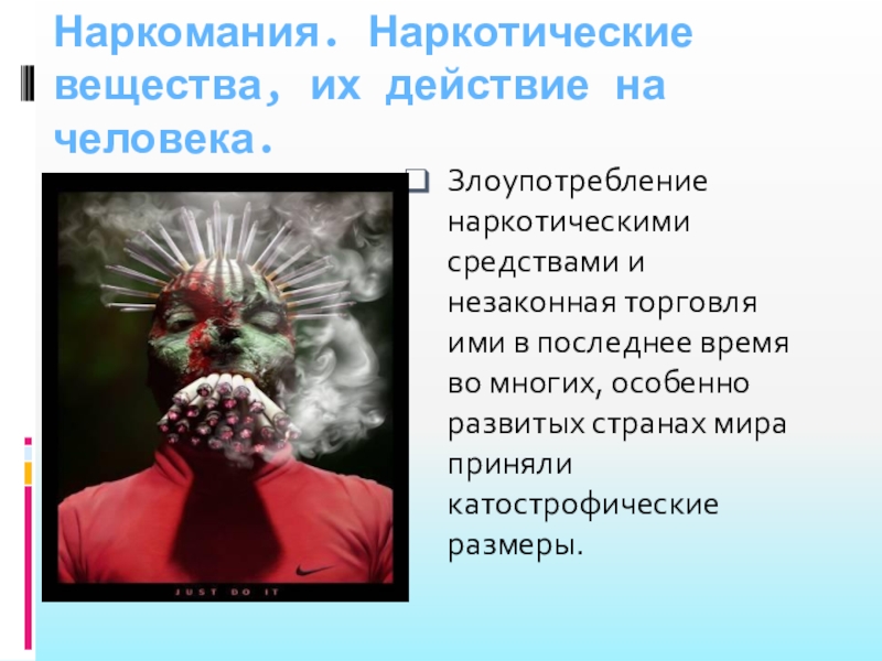 Слайд 20Наркомания. Наркотические вещества, их действие на человека.