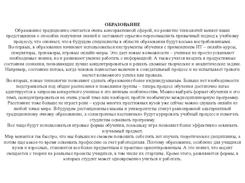 представления о способах получения знаний и заставляет серьезно переосмыслить привычный подход к учебному процессу, что означает, что в будущем специалисты в области образования будут весьма востребованными.