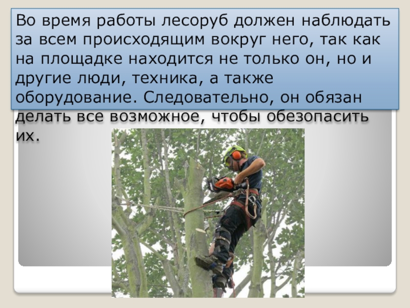 Во время работы лесоруб должен наблюдать за всем происходящим вокруг