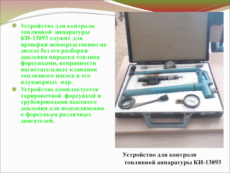 Устройство для контроля топливной аппаратуры КИ-13893 служит для проверки непосредственно на