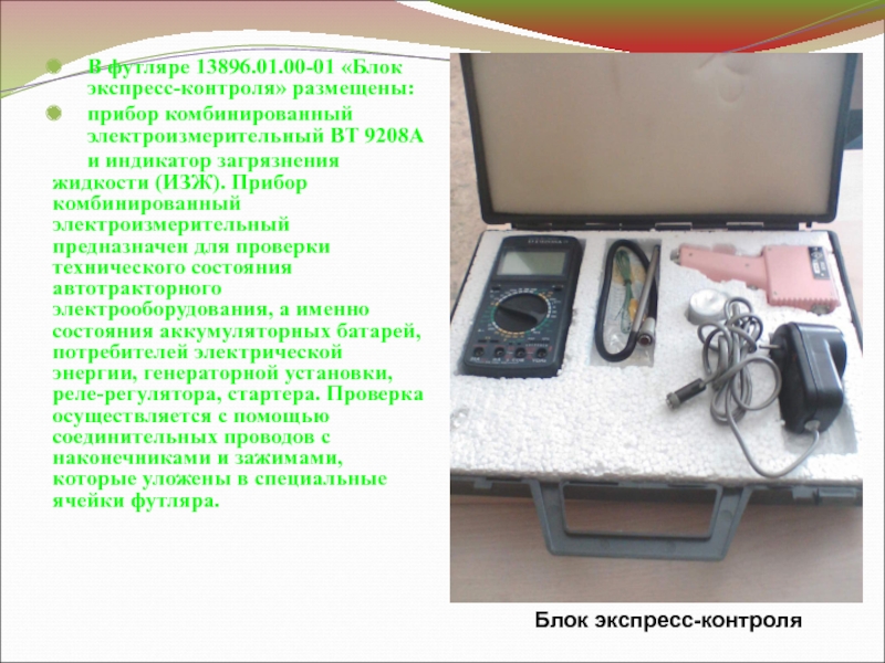 Слайд 15В футляре 13896.01.00-01 «Блок экспресс-контроля» размещены: