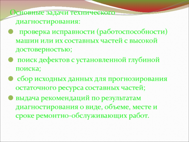 Цель регламентного диагностирования - определение технического состояния, остаточного ресурса соединений, узлов и агрегатов, их потребное регулировании, замене или ремонте.