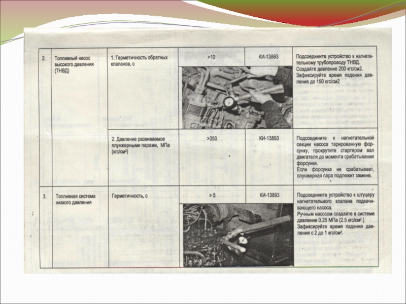 дизеле без его разборки давления впрыска топлива форсунками, исправности нагнетательных клапанов топливного насоса и его плунжерных пар.