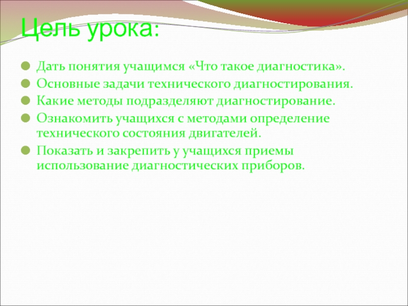 Ознакомить учащихся с методами определение технического состояния двигателей.