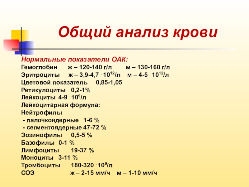 Эритроциты ж – 3,9-4,7 . 1012/л м – 4-5 . 1012/л