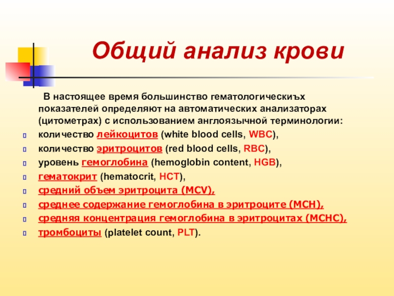 В настоящее время большинство гематологическиъх показателей определяют на автоматических