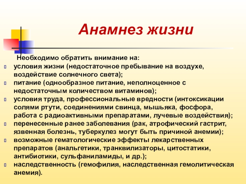 перенесенные ранее заболевания (рак, атрофический гастрит, язвенная болезнь, туберкулез могут быть причиной анемии);