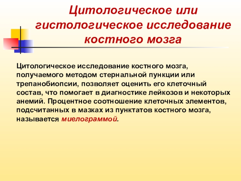 Слайд 20Цитологическое или гистологическое исследование костного мозга