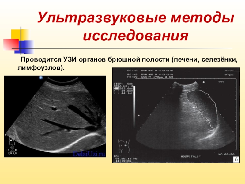 Проводится УЗИ органов брюшной полости (печени, селезёнки, лимфоузлов).