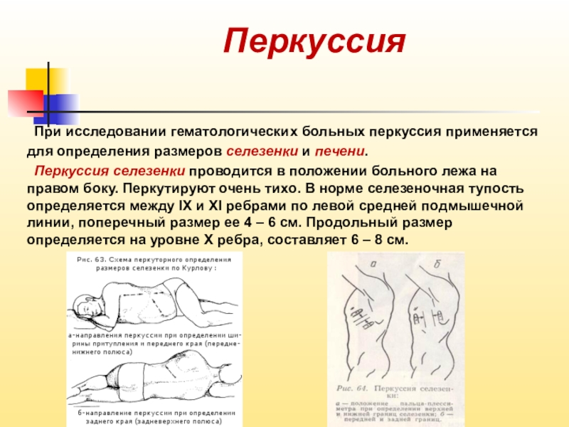 При исследовании гематологических больных перкуссия применяется для определения размеров селезенки и