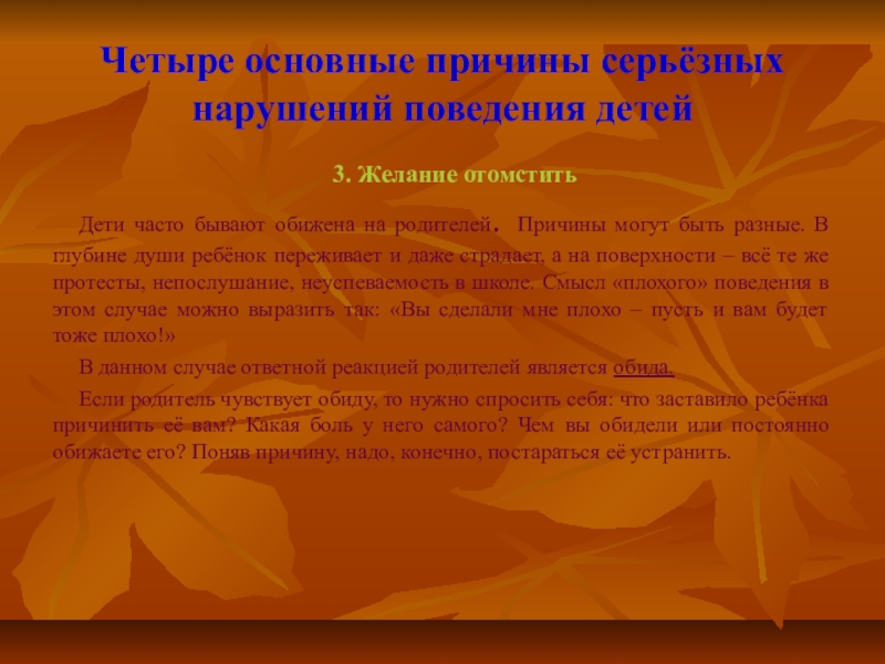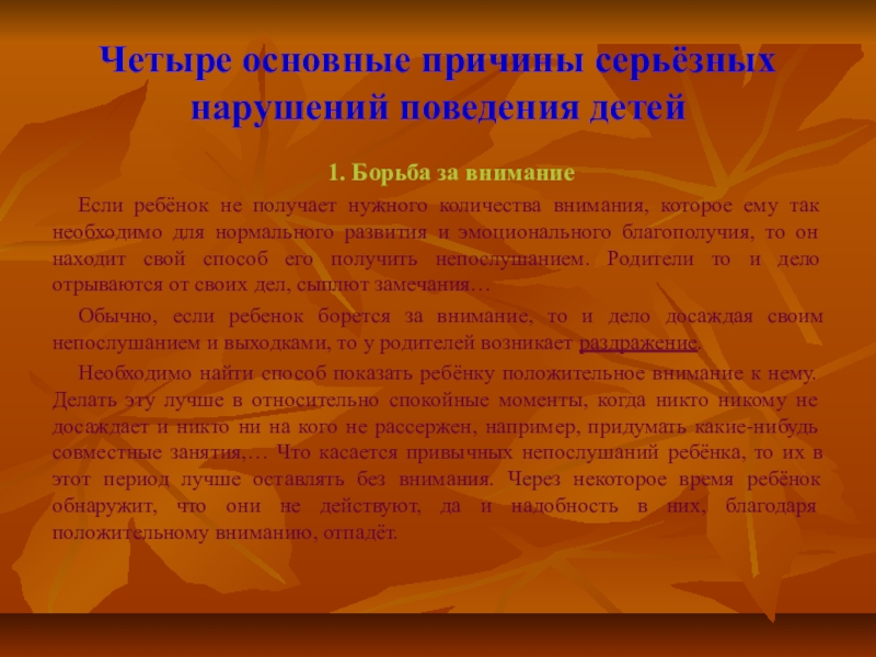 Слайд 7Четыре основные причины серьёзных нарушений поведения детей