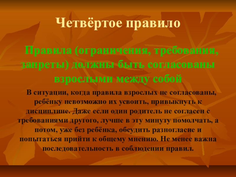 Правила (ограничения, требования, запреты) должны быть согласованы взрослыми между собой