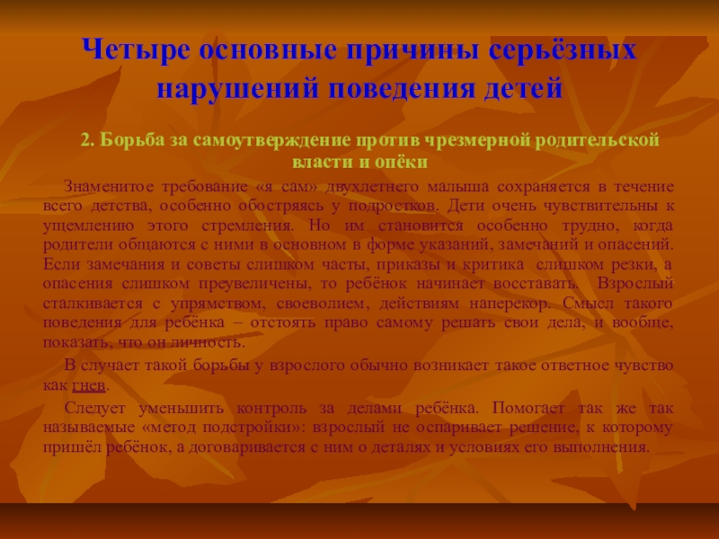 Слайд 6Четыре основные причины серьёзных нарушений поведения детей