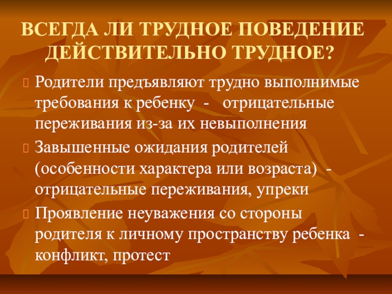 Слайд 3ВСЕГДА ЛИ ТРУДНОЕ ПОВЕДЕНИЕ ДЕЙСТВИТЕЛЬНО ТРУДНОЕ?