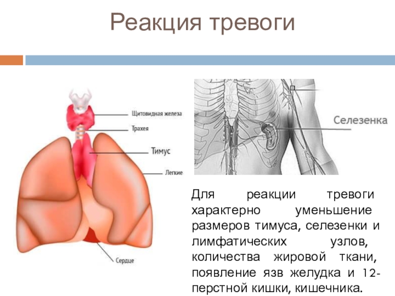 Для реакции тревоги характерно уменьшение размеров тимуса, селезенки и