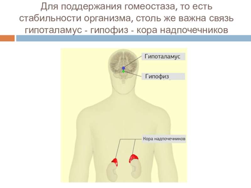 Слайд 13Для поддержания гомеостаза, то есть стабильности организма, столь же важна связь