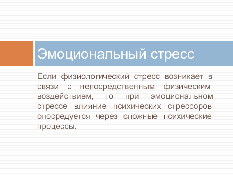 Слайд 16Если физиологический стресс возникает в связи с непосредственным физическим воздействием, то