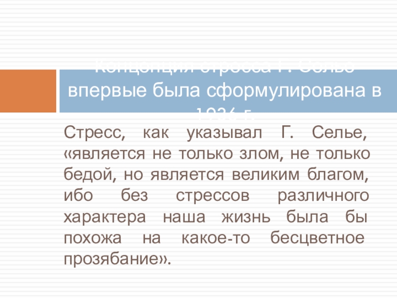 Слайд 3Стресс, как указывал Г. Селье, «является не только злом, не только