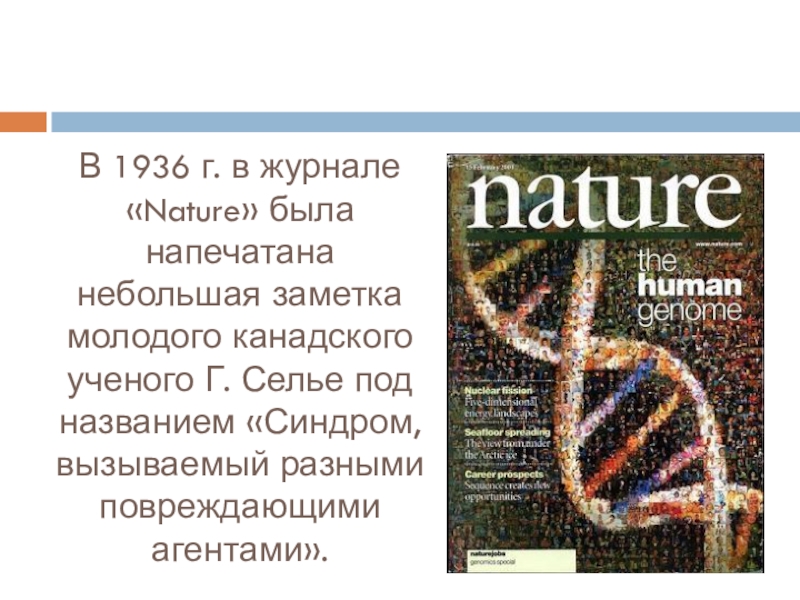 Слайд 6В 1936 г. в журнале «Nature» была напечатана небольшая заметка молодого канадского
