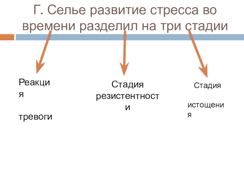Слайд 8Г. Селье развитие стресса во времени разделил на три стадии