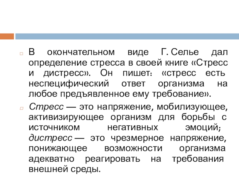 Слайд 14В окончательном виде Г. Селье дал определение стресса в своей книге «Стресс
