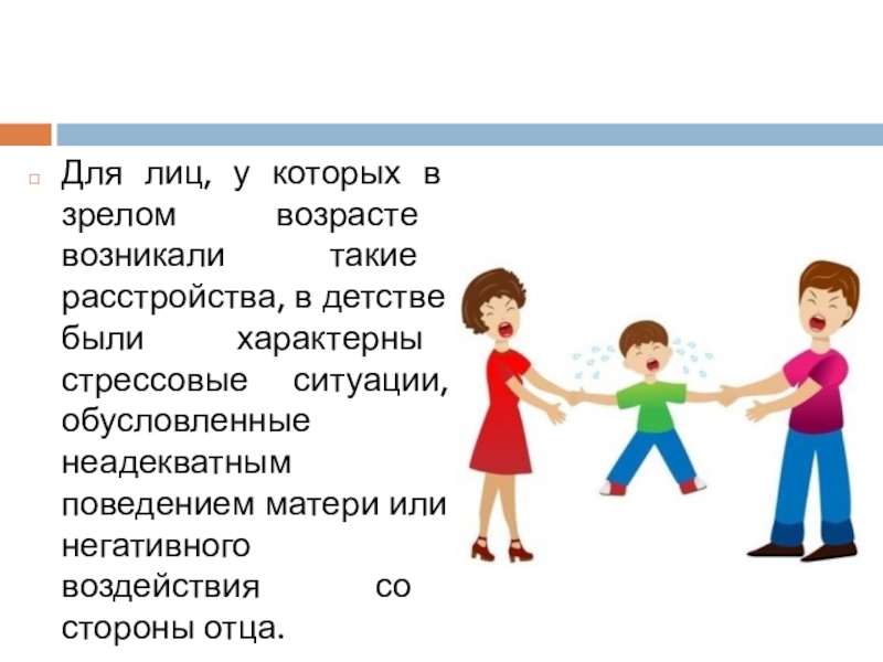 Слайд 22Для лиц, у которых в зрелом возрасте возникали такие расстройства, в