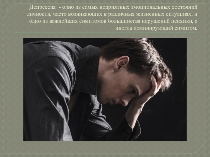 Слайд 2 Депрессия - одно из самых неприятных эмоциональных состояний личности, часто возникающих