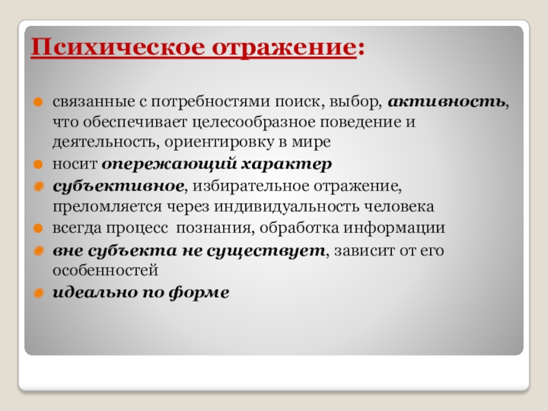 Слайд 6Психическое отражение: