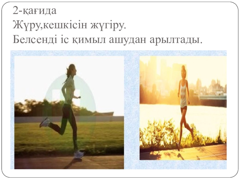Слайд 92-қағида Жүру,кешкісін жүгіру. Белсенді іс қимыл ашудан арылтады.