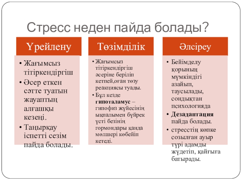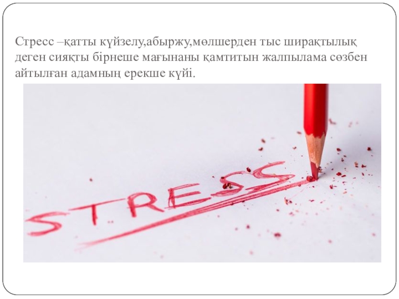 Слайд 3Стресс –қатты күйзелу,абыржу,мөлшерден тыс ширақтылық деген сияқты бірнеше мағынаны қамтитын жалпылама